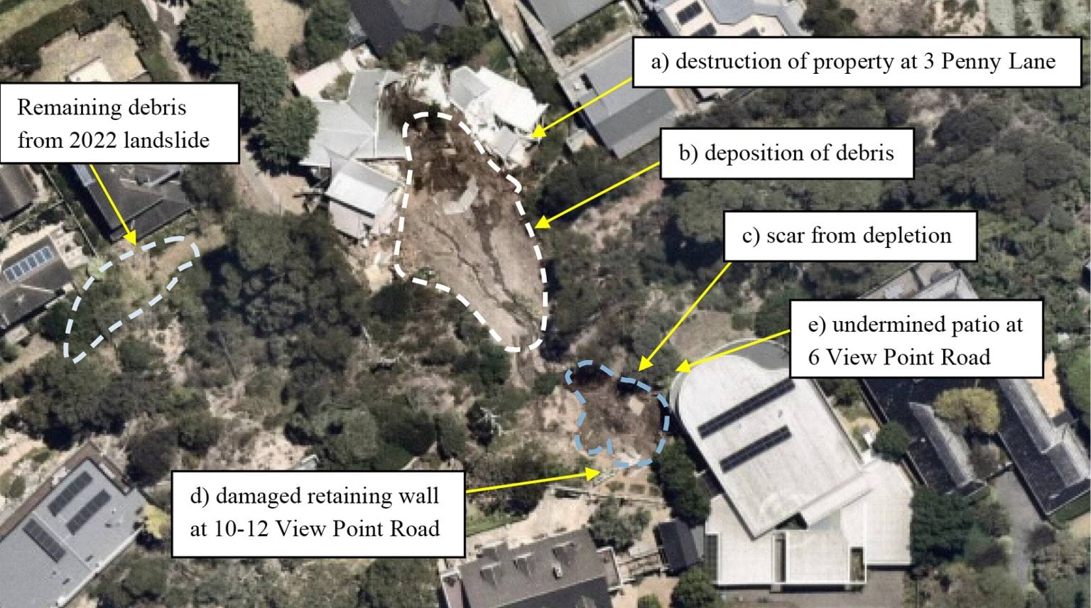 - It is convenient only to begin by briefly identifying the location of the landslides in 2022 and 2025. The November 2022 landslides occurred in the west gully of 10–12 View Point Road, while the 5 January 2025 landslide and the McCrae Landslide occurred in the east gully overlapping 6 and 10–12 View Point Road.