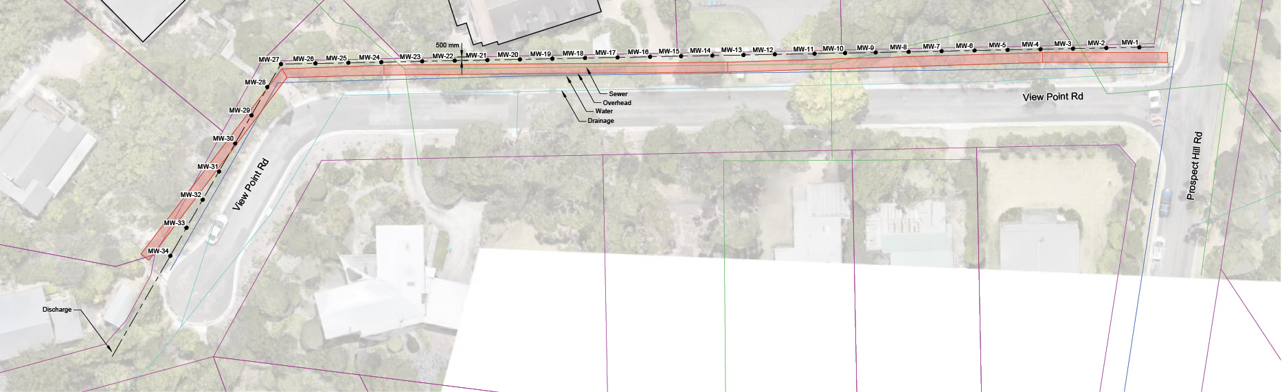 - As shown, the groundwater wells run from the intersection of Prospect Hill Road and View Point Road down the length of View Point Road on the northern side. The design does not provide for permanent pumps, but it does incorporate water monitoring devices and, therefore, power to the area would be required.38